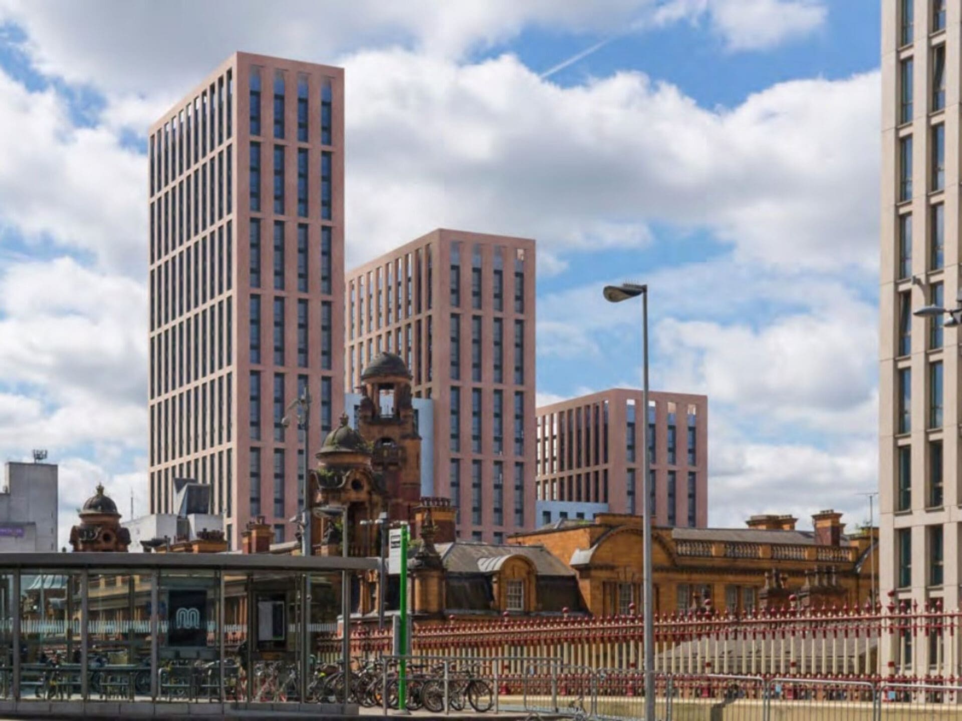 This landmark scheme for IQ Student accommodation provides 1,224 student beds across three interconnected towers rising to 28 storeys.